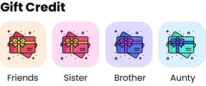 Send credits to family , split with friends, or pool balances for group needs.