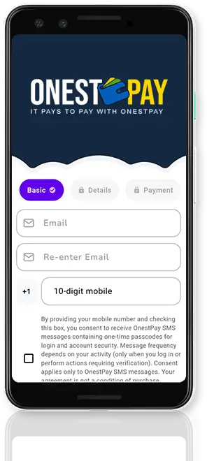 Sign up with your email and add phone number to ensure you only can access your Onestpay Wallet.