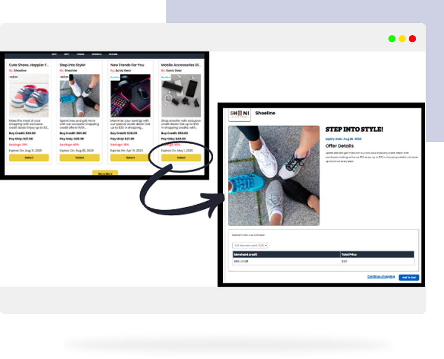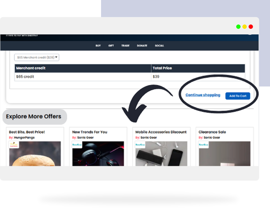 OnestPay’s Buy Page is where users discover handpicked offers from reputed merchants. Each deal lets you buy store credits at a discounted price and use them like cash at partner stores.