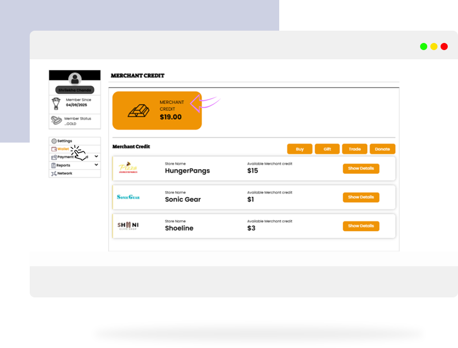 Your personal hub for managing Merchant Credits, Bonus Credits, and cash — in one easy, secure place.