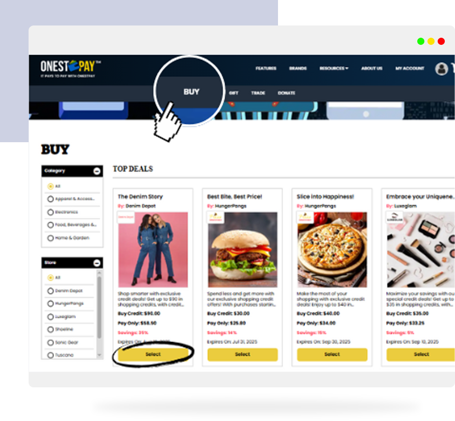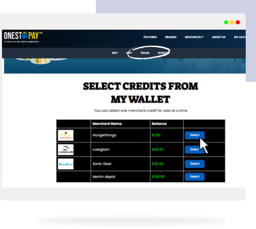 1.1 Buy & Load Merchant Credits with OnestPay™ Digital Wallet