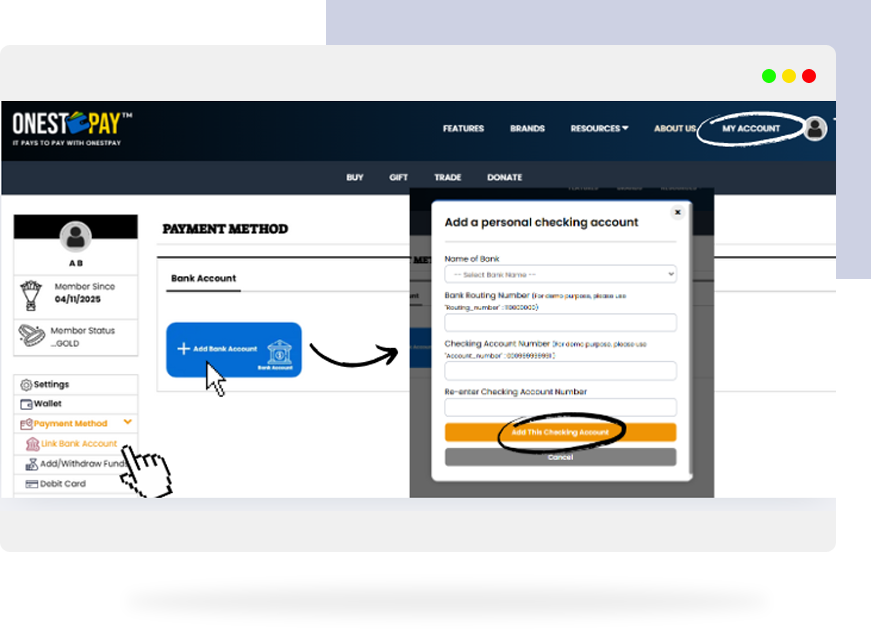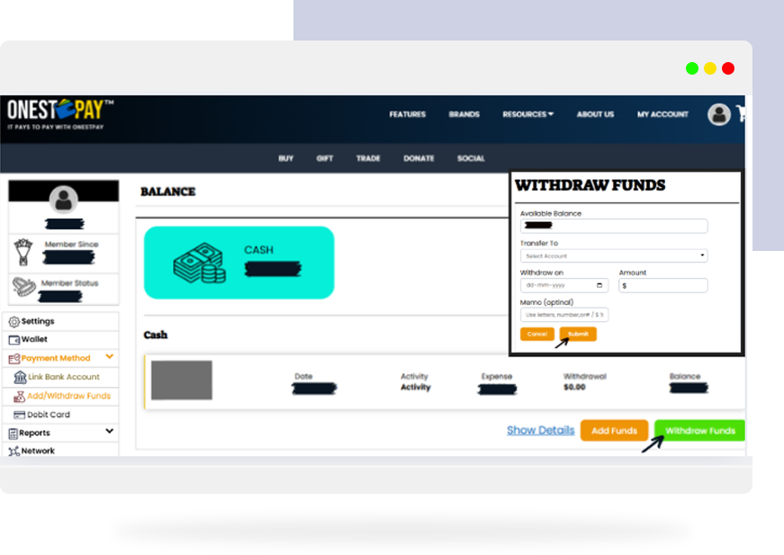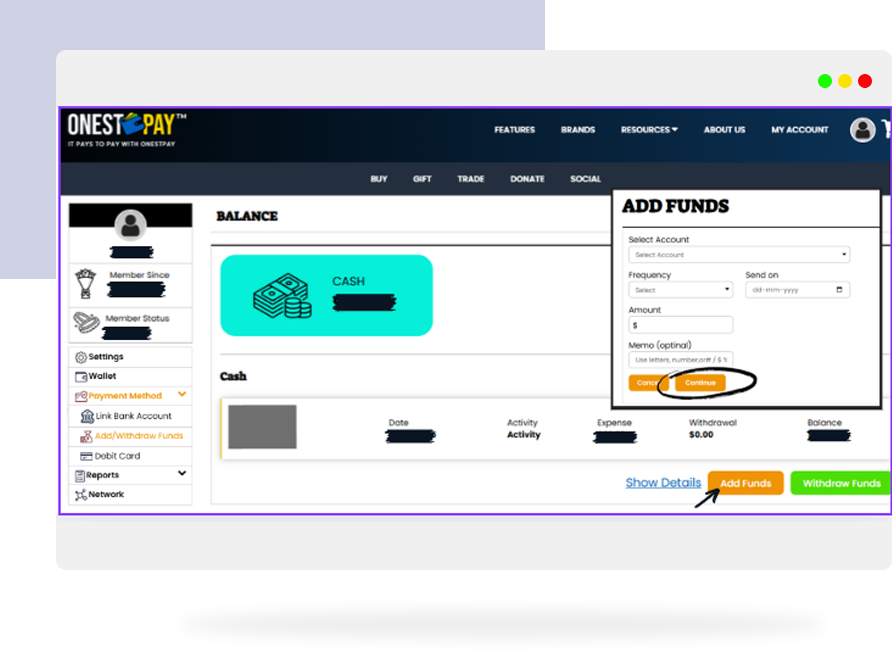 2.2 Add / Withdraw Funds via Your OnestPay™ Account