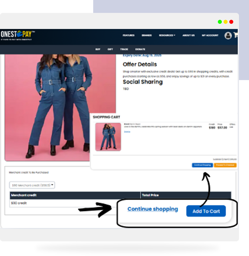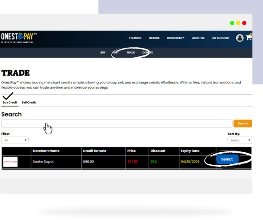 Under the ‘Buy Credit’ tab, browse available credits by merchant