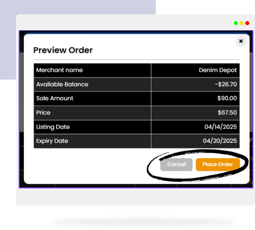 Proceed by clicking on ‘Place Order’ to finalize your purchase.