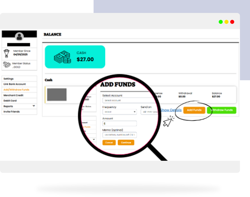 Still in “My Account”, go to “Add/Withdraw Funds.”