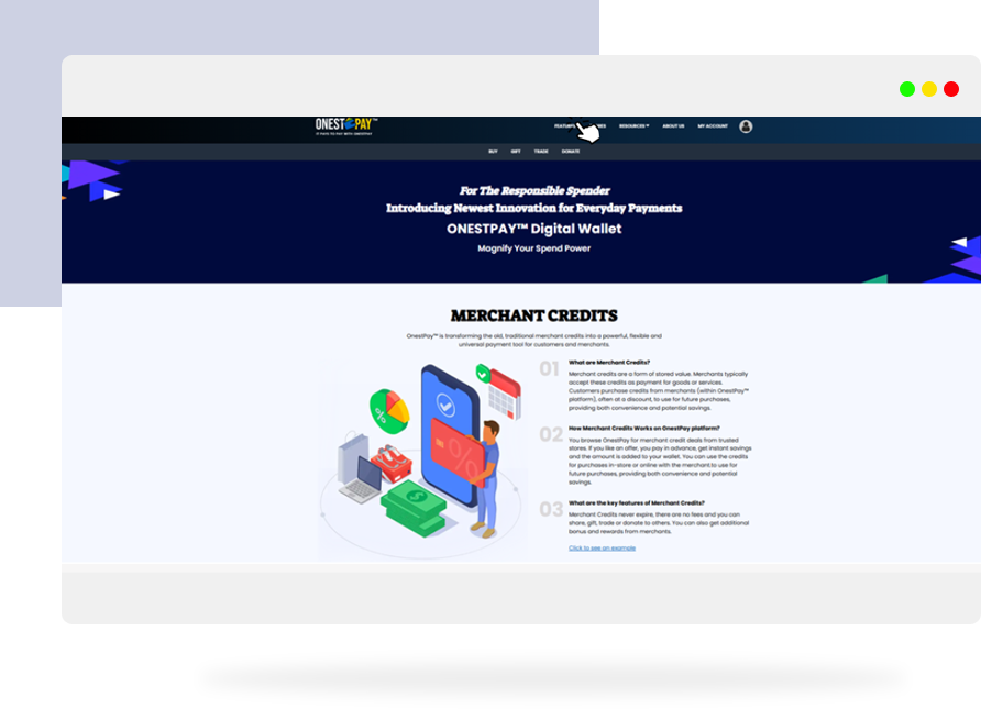 Once you’re in, click “Feature” on the top navigation bar or go directly to onestpay.com/features.