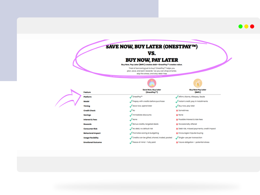 OnestPay™ does the opposite — it helps you plan, save, earn rewards, and stay debt-free.