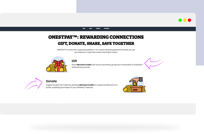 Welcome to OnestPay™, the smart way to buy, gift, trade, donate, and save — socially.