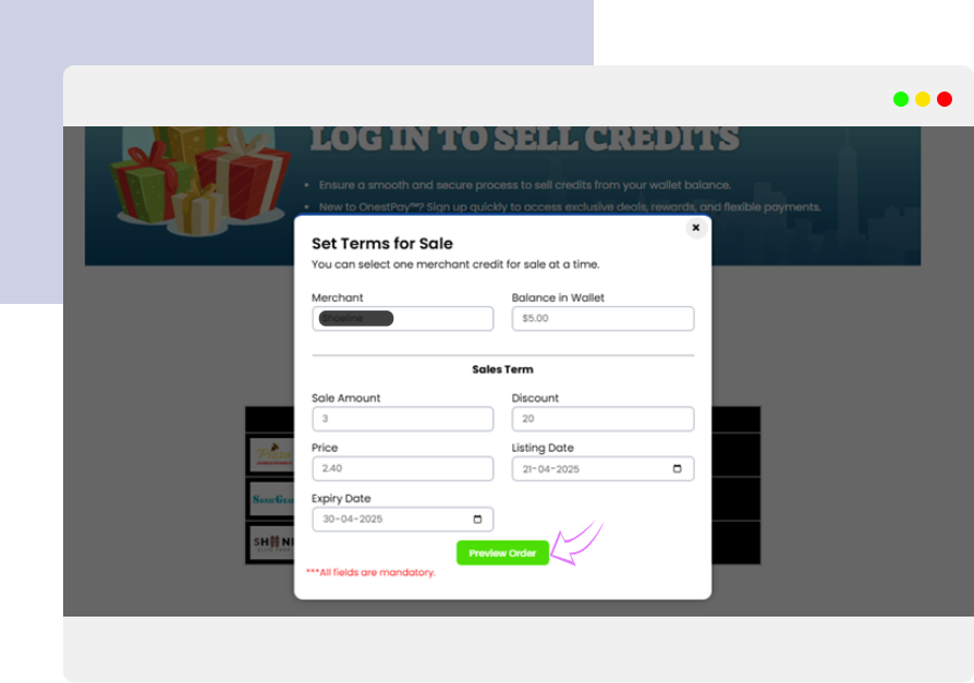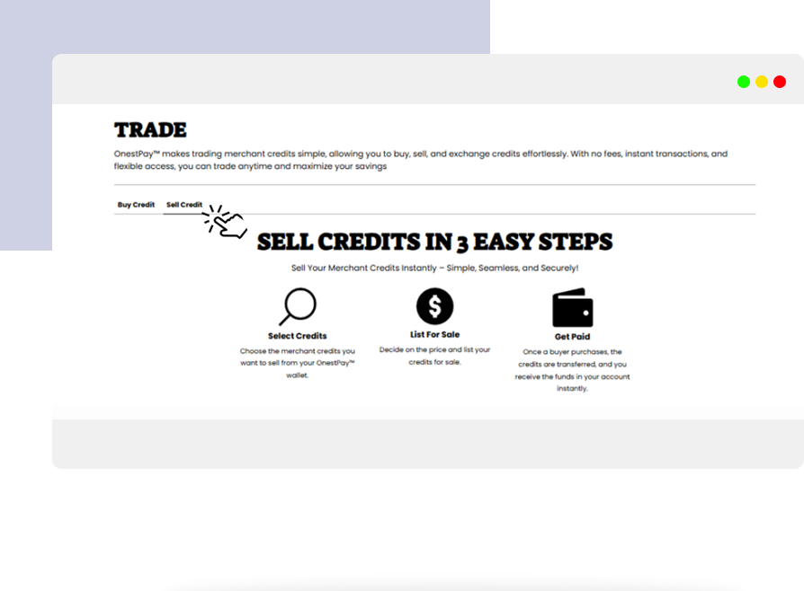 Here’s your step-by-step guide to listing and selling credits on OnestPay™ like a pro.