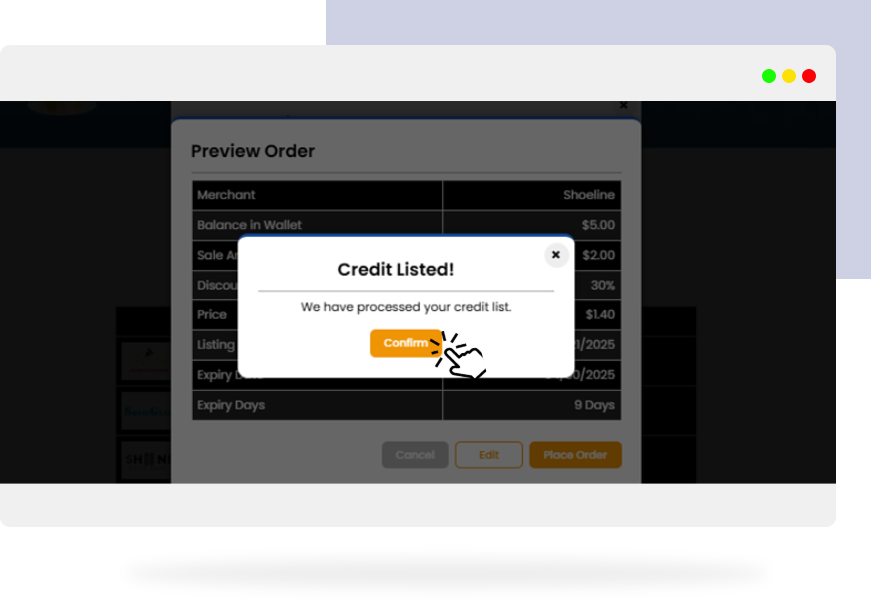 You’ll receive a confirmation: “Credit Listed Confirmed”