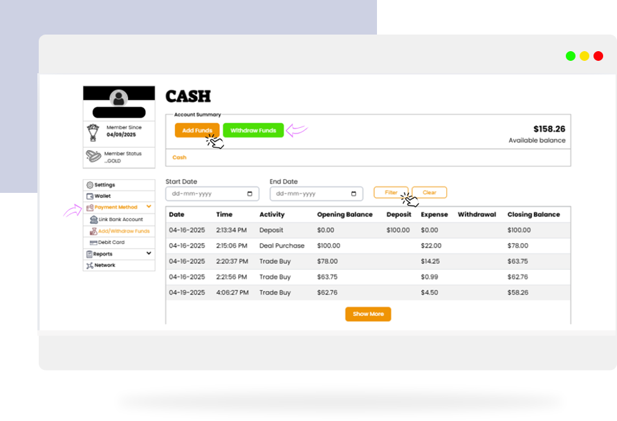 From Multi-Factor Authentication (MFA) to data encryption, your Wallet and transactions are protected every step of the way. Bonus: FDIC insurance applies to your cash balances (not Merchant or Bonus Credits).