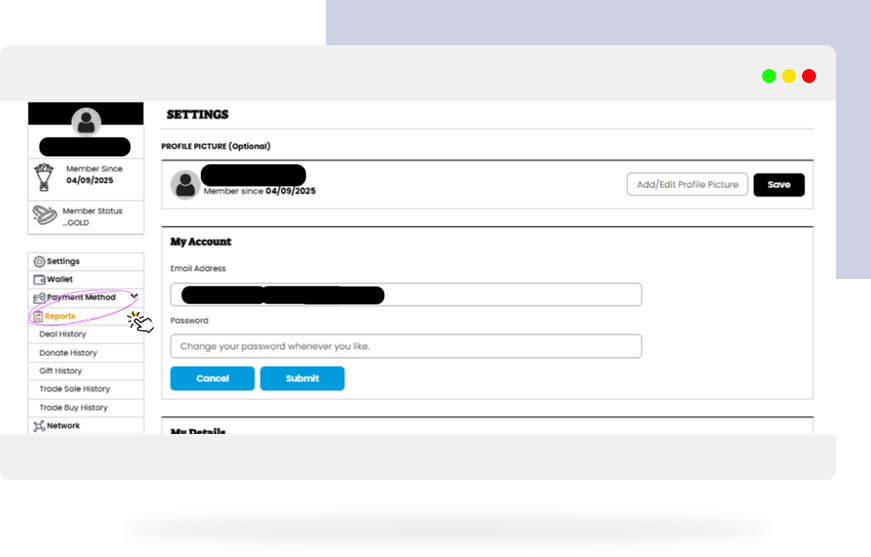 The Reports Dashboard gives you full visibility into every credit move you make. Here’s how to stay on top of your spending and earning: